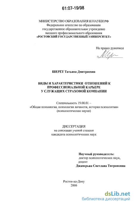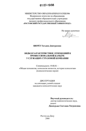 Предметом исследования являются виды и характеристики отношений к профессиональной карьере у служащих страховой компании.
