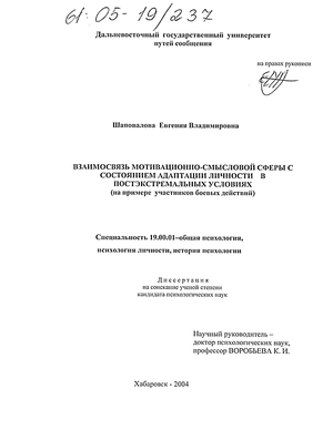 Все вышесказанное определило интерес автора к теме настоящего исследования: «Взаимосвязь мотивационно-смысловой сферы с состоянием адаптации личности в постэкстремальных условиях».