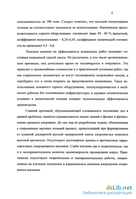 Главной причиной, обусловливающей сложившееся положение дел в данной проблеме, является ограниченность наших знаний о физике и физико-химии процесса смерзания. До сих пор не разработана теория, объясняющая с современных научных позиций процесс, происходящий при формировании из влажной дисперсной рыхлой минеральной массы смерзшегося монолита высокой прочности. Отсутствуют достоверные данные о прочностных характеристиках смерзающихся массивов. Слабо изучены как в теоретическом, так и в экспериментальном аспектах закономерности промерзания пород. Практически отсутствуют теоретические и экспериментальные работы, направленные на изучение механизма и рациональных режимов разрушения смерзшихся массивов.