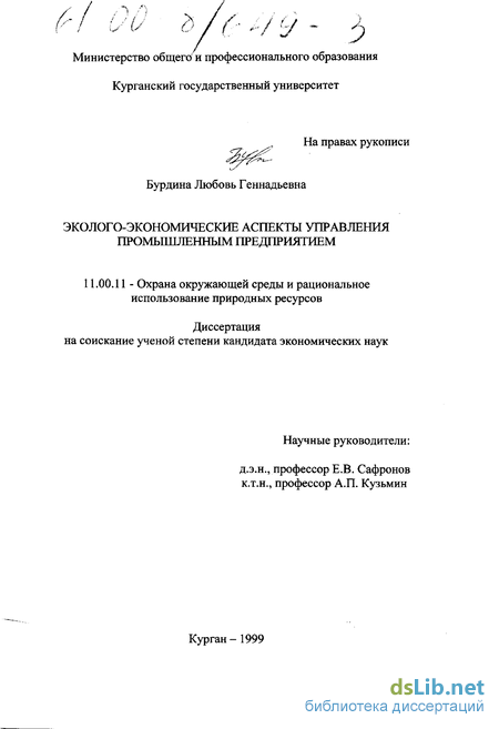 В третьей главе на примере типовых промышленных предприятий рассмотрен механизм управления охраной окружающей среды и проведен эколо-го-экономический анализ их деятельности.