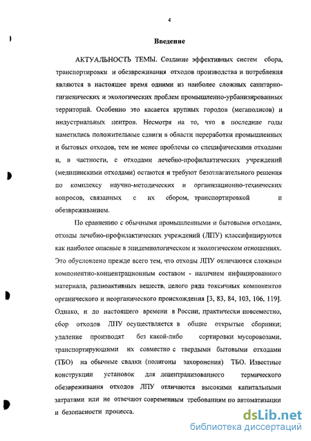 Можно утверждать, что в сложившейся ситуации реальная угроза инфицирования населения сохраняется на всех этапах обращения с медицинскими отходами. Это определяет необходимость замены существующей системы сбора, транспортировки и обезвреживания отходов ЛПУ на более совершенную, обеспечивающую полную санитарно-гигиеническую и экологическую безопасность процесса при минимуме затрат.