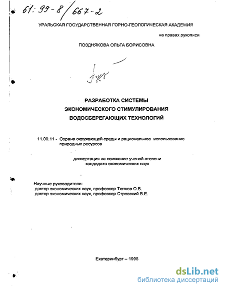 Цель работы заключается в совершенствовании системы экономического стимулирования создания водосберегающих технологий.