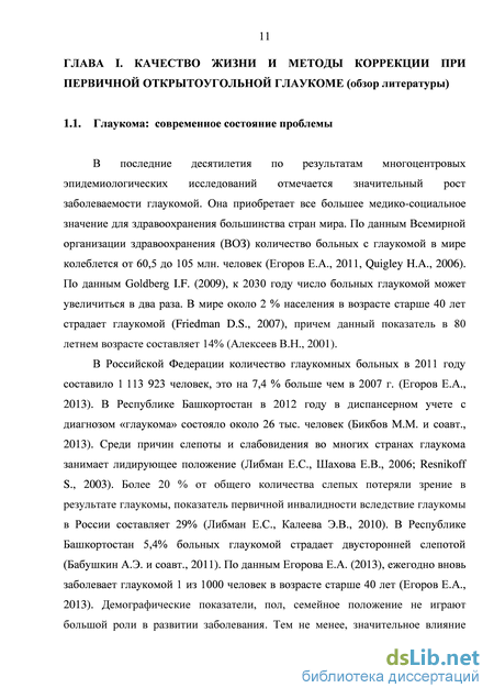 ГЛАВА I. Качество жизни и методы коррекции при первичной открытоугольной глаукоме (обзор литературы) 11