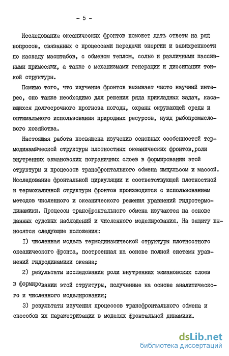 Настоящая работа посвящена изучению основных особенностей термодинамической структуры плотностных океанических фронтов,роли внутренних экмановских пограничных слоев в формировании этой структуры и процессов трансфронтального обмена импульсом и массой. Исследование фронтальной циркуляции и соответствующей плотностной и термохалинной структуры фронтов производится с использованием методов численного и океанического решения уравнений гидротермодинамики. Процессы трансфронтального обмена изучаются на основе данных судовых наблюдений и численного моделирования. На защиту выносятся следующие положения: