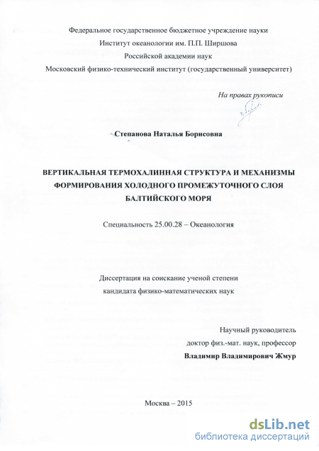 Научная и практическая значимость работы. Результаты, полученные в настоящей работе, углубляют понимание процессов, влияющих на модификацию промеж уточного слоя вод Балтийского моря, что может бы ть важным для изучения переноса примесей в водоеме. Достигнутый прогресс в понимании причин эволюции характеристик промежуточных слоев собственно Балтийского моря и важности вклада в их модификацию не только вертикального перемешивания, но и механизмов адвективного происхождения является важным шагом в изучении общего водообмена Балтийского моря.