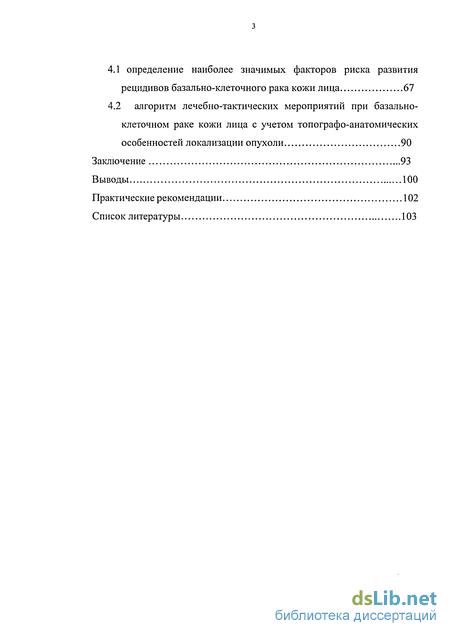 Глава 3. Анализ возникновения рецидивов базально-клеточного рака кожи лица 44