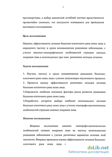 Оценить эффективность лечения базально-клеточного рака кожи лица и определить частоту и сроки возникновения рецидивов заболевания, с учетом анатомо-топографических особенностей строения кожных покровов лица и используемых при этом различных методов лечения.