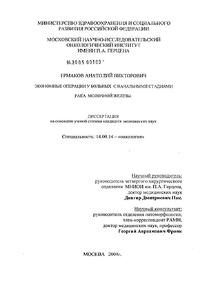 Актуальность темы. Настоящая работа посвящена одной из актуальных проблем онкологии - разработке путей оптимизации объема оперативного лечения при раке молочной железы (РМЖ).