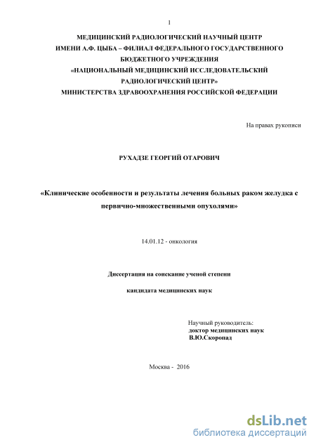 Глава 1. Рак желудка в аспекте первично-множественных злокачественных опухолей (Обзор литературы) 14