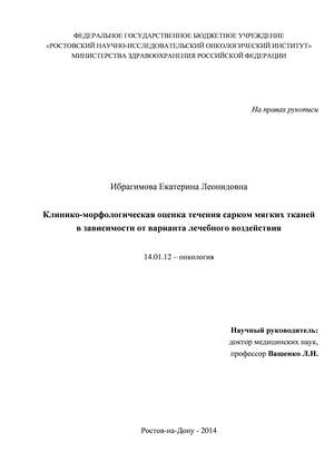 Апробация работы. Апробация диссертации состоялась 27 февраля 2014 г. на заседании Ученого Совета Ростовского научно-исследовательского онкологического института.