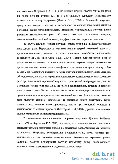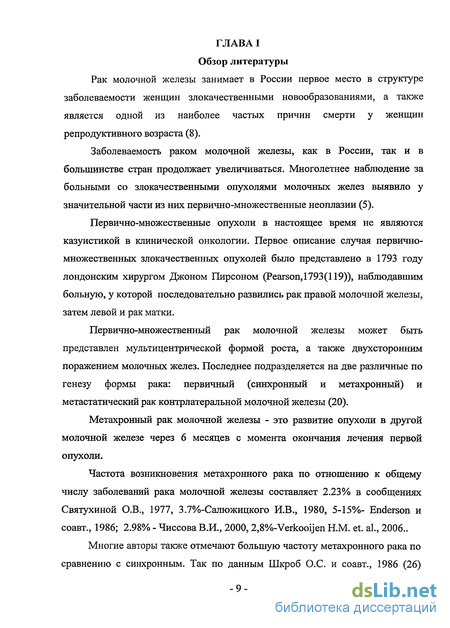 Глава I Современный взгляд на проблему метахронного рака молочной железы (обзор литературы) 9