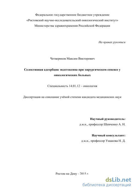 Селективная адсорбция эндотоксина является эффективным, патогенетически обоснованным методом лечения грамотрицательного хирургического сепсиса у онкологических больных.
