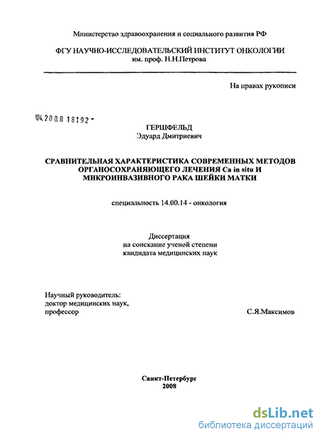Оптимизация метода органосохраняющего лечения карциномы in situ и микроинвазивного рака шейки матки.