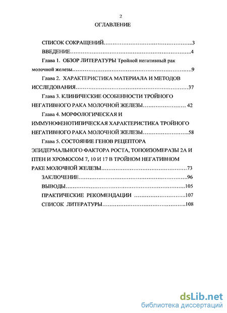 Глава 5. Состояние генов рецептора эпидермального фактора роста, топоизомеразы 2а и птен и хромосом 7, 10 и 17 в тройном негативном раке молочной железы 73