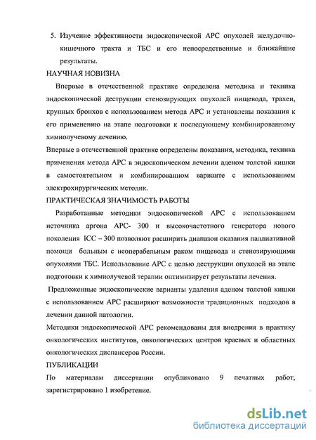 5. Изучение эффективности эндоскопической АРС опухолей желудочно-кишечного тракта и ТБС и его непосредственные и ближайшие результаты. НАУЧНАЯ НОВИЗНА