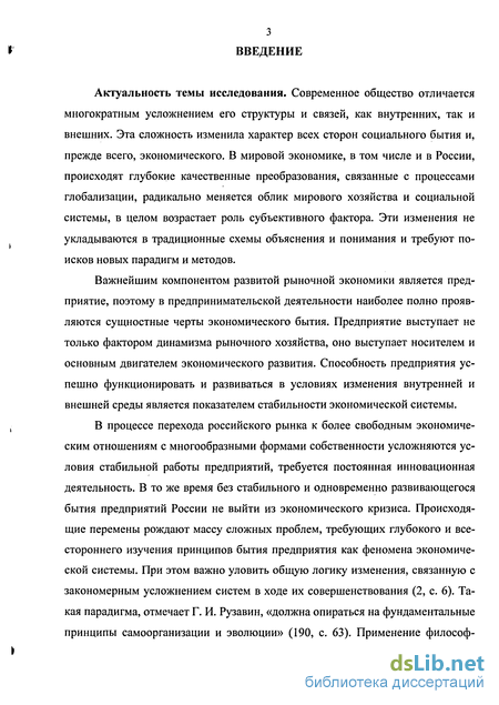 ским отношениям с многообразными формами собственности усложняются условия стабильной работы предприятий, требуется постоянная инновационная деятельность. В то же время без стабильного и одновременно развивающегося бытия предприятий России не выйти из экономического кризиса. Происходящие перемены рождают массу сложных проблем, требующих глубокого и всестороннего изучения принципов бытия предприятия как феномена экономической системы. При этом важно уловить общую логику изменения, связанную с закономерным усложнением систем в ходе их совершенствования (2, с. 6). Такая парадигма, отмечает Г. И. Рузавин, «должна опираться на фундаментальные принципы самоорганизации и эволюции» (190, с. 63). Применение философ-