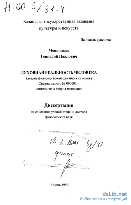 Рассмотрение и установление категориального статуса самого явления и понятия «духовная реальность человека» в проблематике духа человека представляет собой самый существенный вопрос, сущность первого порядка. Частных знаний накопилось здесь немало, категориальность же духа человека настолько недостаточно уяснена, что требует специального отдельного внимания. В постановке бытийности-реальности-действителыюсти, если и рассматривается, то сознание, а не дух человека, поэтому в данном исследовании такая работа проводится по сути дела впервые. Недостаток раскрытия онтологии духа человека, правда в виде традиционного сознания, неоправданный накопавшийся гносеологизм в этой проблематике справедливо подчеркивает А.В.Ерахтин [235, С. 19]. Недостаток разработки реальности сознания, опять же, остро почувствовала И.В.Дмитр-евская [209, С.5].