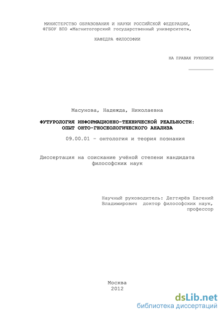 Глава 1 Анализ основных компонентов футурологии информационно-технической реальности 12