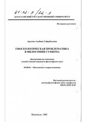 К настоящему времени последнее обстоятельство во многом предопределяет динамику и тематику исследований и в отечественной науке. Выбор темы диссертационного исследования обусловлен рядом объективных факторов. Прежде всего, значительна степень влияния суфизма как исламского мистицизма на развитие духовной культуры и общественно-политическую жизнь не только мусульманских стран, но и республик Северного Кавказа. Несмотря на относительный рост числа отечественных исследований по исламской проблематике, сравнительно незначительное их количество посвящено непосредственно суфизму, еще меньше - гносеологии мусульманского мистицизма. Более того, анализ научной литературы по философии суфизма показывает, что выбор направлений научного поиска детерминирован частными проблемами, практически отсутствуют обобщающие работы, связанные с гносеологией.