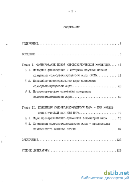 Глава II. Концепция самоорганизующегося мира - как модель синтетической картины мира 70
