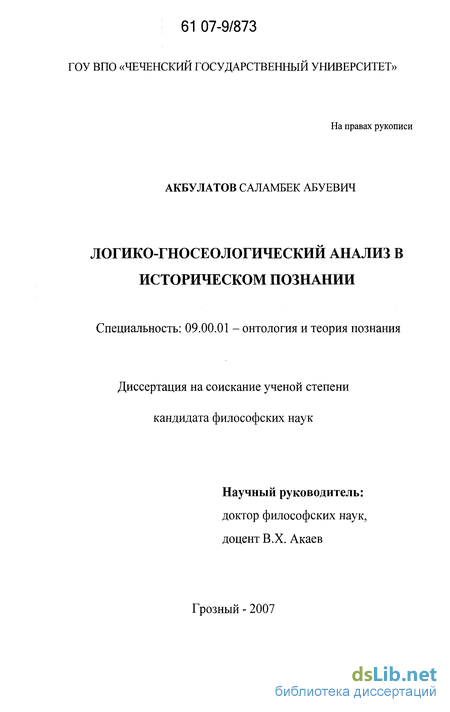 Апробация исследования. Диссертация обсуждалась на заседаниях кафедры философии Чеченского государственного университета, на внутривузовских конференциях. Основное содержание диссертации изложено в 3 научных статьях и брошюре соискателя общим объемом 2,5 п.л.