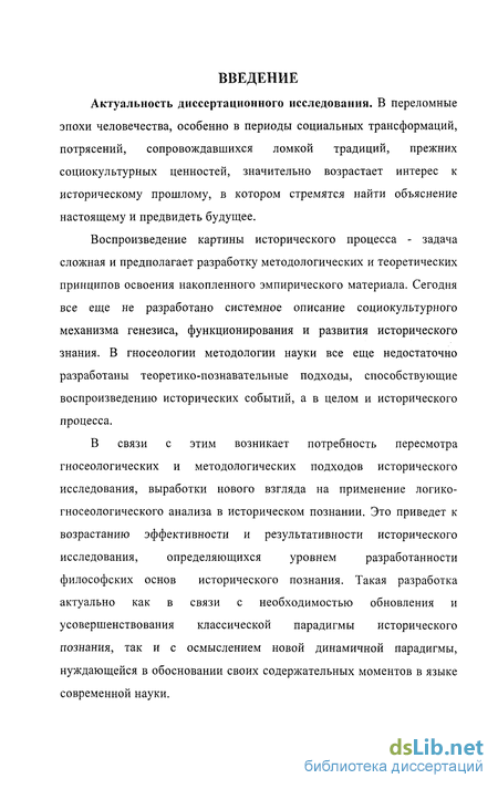 философских основ исторического познания. Такая разработка актуально как в связи с необходимостью обновления и усовершенствования классической парадигмы исторического познания, так и с осмыслением новой динамичной парадигмы, нуждающейся в обосновании своих содержательных моментов в языке современной науки.