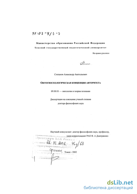 Степанов Александр Анатольевич. Онтогносеологическая концепция авторитета : диссертация ... доктора философских наук : 09.00.01.- Томск, 2002.- 324 с.: ил. РГБ ОД, 71 03-9/5-5
