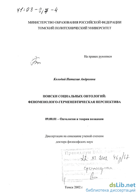 Глава 2. Критика трансцендентализма как условие формирования социальных онтологии в постнеклассической мысли 97