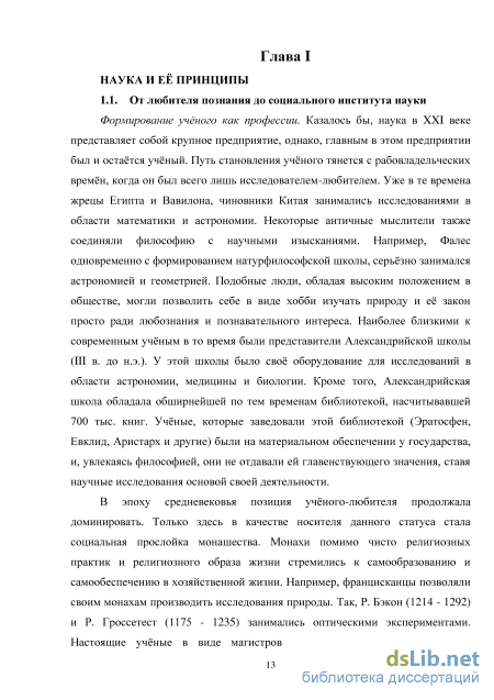 Формирование учёного как профессии. Казалось бы, наука в XXI веке представляет собой крупное предприятие, однако, главным в этом предприятии был и остаётся учёный. Путь становления учёного тянется с рабовладельческих времён, когда он был всего лишь исследователем-любителем. Уже в те времена жрецы Египта и Вавилона, чиновники Китая занимались исследованиями в области математики и астрономии. Некоторые античные мыслители также соединяли философию с научными изысканиями. Например, Фалес одновременно с формированием натурфилософской школы, серьёзно занимался астрономией и геометрией. Подобные люди, обладая высоким положением в обществе, могли позволить себе в виде хобби изучать природу и её закон просто ради любознания и познавательного интереса. Наиболее близкими к современным учёным в то время были представители Александрийской школы (III в. до н.э.). У этой школы было своё оборудование для исследований в области астрономии, медицины и биологии. Кроме того, Александрийская школа обладала обширнейшей по тем временам библиотекой, насчитывавшей 700 тыс. книг. Учёные, которые заведовали этой библиотекой (Эратосфен, Евклид, Аристарх и другие) были на материальном обеспечении у государства, и, увлекаясь философией, они не отдавали ей главенствующего значения, ставя научные исследования основой своей деятельности.