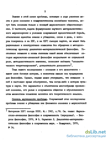 Степень изученности проблемы» Современный этап исследования проблемы знания и убеждения как феноменов сознания в марксистской
