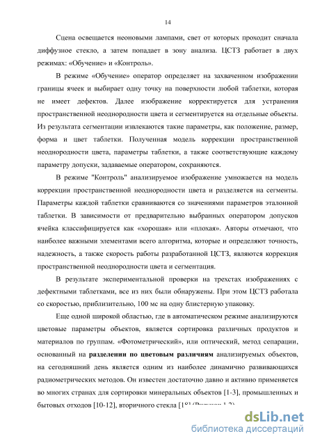 ГЛАВА 1. Аналитический обзор систем технического зрения, основанных на применении цветового анализа 12