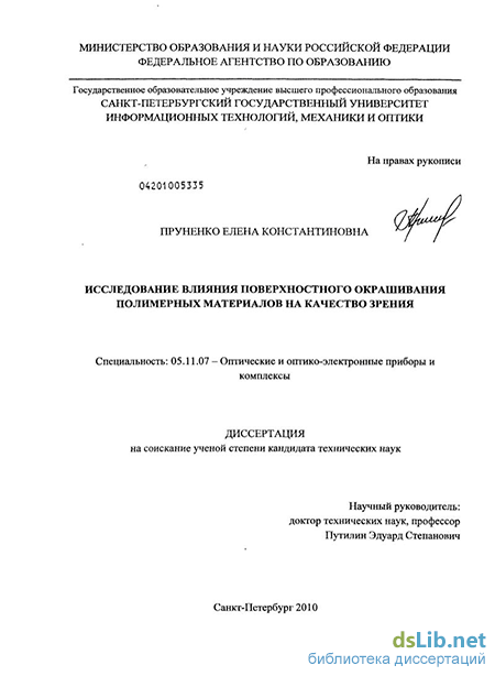 Работа посвящена исследованию процесса поверхностного окрашивания полимерных материалов и оптических свойств этих материалов после поверхностного окрашивания, а так же выявлению влияния поверхностно окрашенных полимерных очковых линз на качество зрения (остроту зрения и цветоощущение).