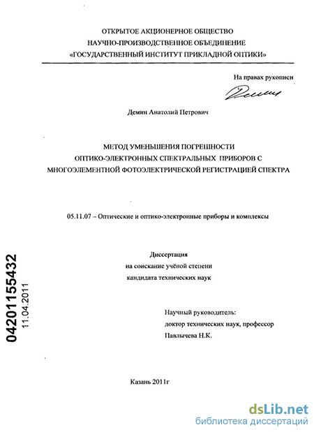 Практическая ценность работы. Разработанный метод уменьшения погрешности позволяет проектировать оптико-электронные спектральные приборы с многоэлементной фотоэлектрической регистрацией с минимальной погрешностью спектрофотометрических измерений.
