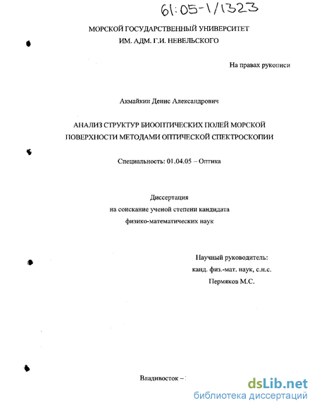 - Биооптические параметры морской воды и основные принципы измерения концентрации хлорофилла «А» по спектрам восходящего из морской толщи излучения