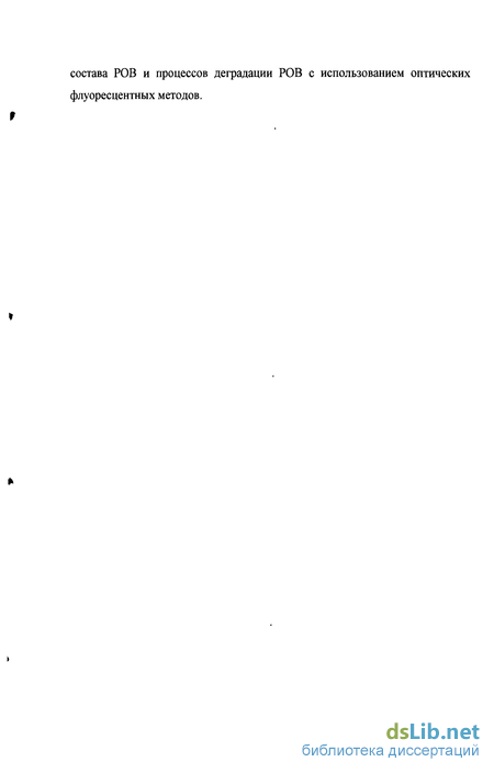 спектры ЛИФ дают возможность выделить вклад «молодого» РОВ в общий сигнал флуоресценции всего РОВ, что позволяет проводить отработку методики измерения темпов воспроизводства растворённого органического вещества фитопланктонными сообществами [4,9], исследовать результаты воздействия крупномасштабных процессов на состояние фотосинтетического аппарата клеток фитопланктона [13,15]. В работах [4,9], принципиально, решены вопросы, связанные с разработкой метода мониторинга процессов воспроизводства растворённого органического вещества клетками фитопланктона с использованием спектроскопии ЛИФ. Однако, необходимо дальнейшее исследование динамики спектров ЛИФ в процессе гибели клеток фитопланктона и дальнейшей деградации органического вещества, произведенного в процессе реакции фотосинтеза. Эти исследования обеспечат понимание физических процессов, лежащих в основе вариации параметров спектров ЛИФ в процессе деградации органического вещества, а так же позволят ввести количественные параметры, характеризующие динамику спектров ЛИФ и процессы деградации органического вещества в морской воде. В связи с вышесказанным задачи, тема исследований настоящей работы является актуальной.