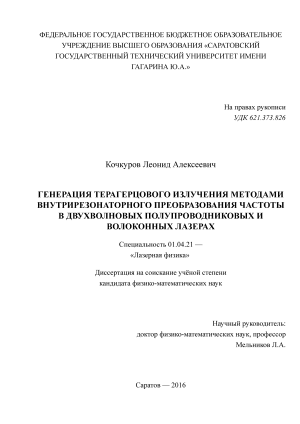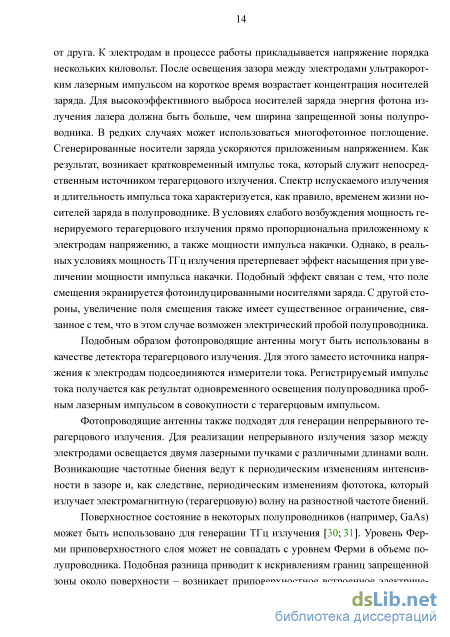 Терагерцовое (ТГц) излучение, электромагнитный диапазон которого лежит в интервале от 0.3 до 10 ТГц (1 мм - 30 мкм), является сравнительно новой областью для исследования. Этот диапазон занимает большую часть электромагнитного спектра между инфракрасной (ИК) и микроволновой областями. Несмотря на существование естественных источников ТГц излучения (например, реликтового) по своей природе оно является некогерентным, поэтому не может применяться для таких целей, как спектроскопия, локация, имиджинг и др.