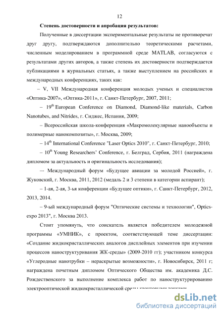 наноструктуривания ЖК-среды» (2009-2010 гг.); участником конкурса «Углеродные