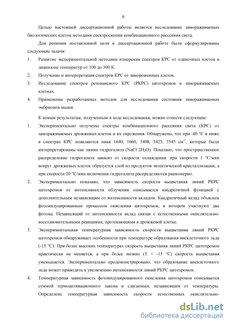 5.1 Применение спектроскопии КРС для исследования замораживаемых эмбрионов 65