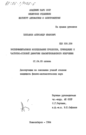 ИССЛЕДОВАНИЕ ПРИРОДЫ ЧАСТОТНО-УГЛОВОЙ ДИФФУЗИИ МОЩНОГО ИЗЛУЧЕНИЯ, КВАЗИРЕЗОНАНСНОГО ПЕРЕХОДУ 35,/2-ЗР3/& АТОМА НАТРИЯ.