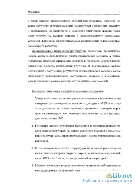 В работе изучаются как оптические свойства композитных структур на основе пористого кремния, характеризующие особенности их ФЗЗ, так и нелинейно-оптические свойства. С фундаментальной точки зрения интерес к нелинейно-оптическим свойствам продиктован возможностью получения новой информации о строении и свойствах материалов. Их изучение имеет и практическое значение, например, для получения эффективной генерации излучения на суммарной частоте или для изготовления устройств, основанных на эффектах самофокусировки и самоограничения интенсивности излучения.