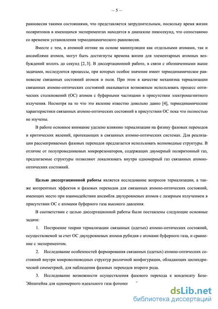 Целью диссертационной работы является исследование термали-зации, а также когерентных эффектов и фазовых переходов для связанных атомно-оптических состояний, имеющих место при взаимодействии ан-4