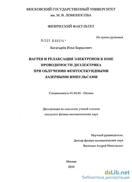 Поэтому данная работа посвящена теоретическому исследованию нагрева и релаксации электронов диэлектрика при облучении фемтосекундными лазерными импульсами.