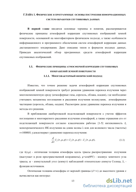 1.1. Физические принципы атмосферной коррекции спутниковых изображений земной поверхности 13