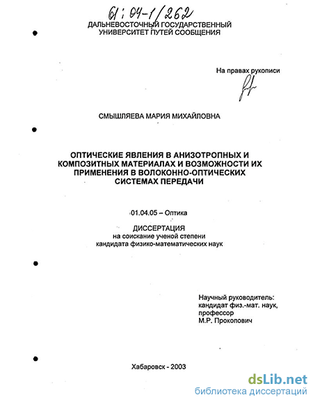 ки, оптоэлектроники и лазерной техники. Несмотря на очевидную перспективность композиционных материалов, до настоящего времени не проводилось исследований, подтверждающих возможность их применения в технике пассивных компонентов оптических систем передачи. Например, отсутствовало полное теоретическое обоснование правила Урбаха, установившего температурную зависимость спектра на краю основного поглощения. Не рассматривался вопрос о возможности применения композиционных материалов в составе пассивных компонентов ВОЛС.