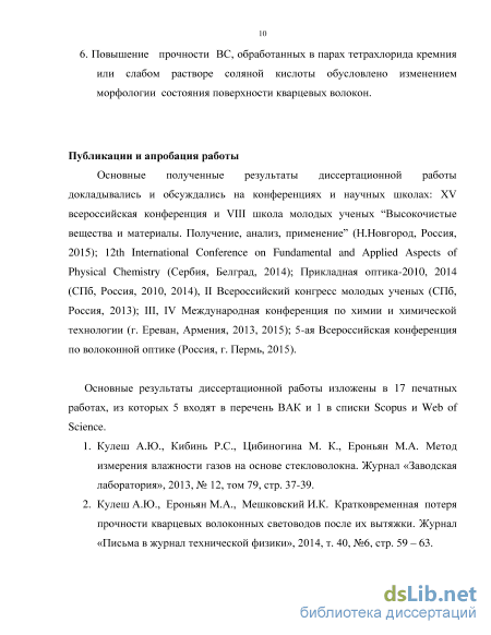 Апробация работы. Основные результаты диссертационной работы докладывались и обсуждались на конференциях и научных школах: XV Всероссийской конференции и VIII школе молодых ученых “Высокочистые вещества и материалы. Получение, анализ, применение” (Н.Новгород, Россия, 2015); 12th International Conference on Fundamental and Applied Aspects of Physical Chemistry (Сербия, Белград, 2014); Международных конференциях "Прикладная оптика-2010, 2014" (СПб, Россия, 2010, 2014), II Всероссийском конгрессе молодых ученых (СПб, Россия, 2013); III, IV Международной конференции по химии и химической технологии (г. Ереван, Армения, 2013, 2015); 5-ой Всероссийская конференция по волоконной оптике (Россия, г. Пермь, 2015).
