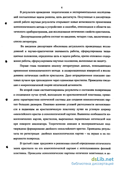 Первая глава посвящена анализу литературных данных, показывающих применение коноскопического метода и поляризационных измерений в исследовании оптических свойств кристаллов. Дано нетрадиционное описание световых пучков при прохождении через одноосные кристаллы. Приведены сведения о микроскопической теории оптической активности.