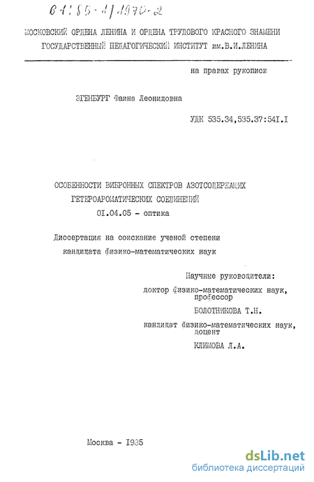 Итак, анализ имеющихся в литературе данных показал, что изменение электронной конфигурации должно отразиться на характере ЭКВ и, следовательно, проявиться в ее вибронном спектре. Для установления связи между такими изменениями электронных состояний и характером ЭКВ по экспериментальным спектрам представляется необходимым получение тонкоструктурного спектра (т.е. использование низких температур 4,2 К). Вследствие сложности колебании многоатомных молекул для надежной интерпретации колебательной структуры полученных экспериментально виб-ронных спектров необходим модельный расчет нормальных колебаний исследуемого соединения. Решение этой задачи позволит вы-« явить колебания, формирующие вибронный спектр, интерпретировать их по симметрии и форме, а также на основании изучения распределения интенсивности полос, вычислить константы для различных механизмов ЭКВ в исследуемых молекулах.