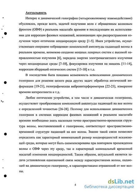 В последствии была показана возможность использования динамических голограмм для решения целого ряда других задач: обработка оптической информации [19-21], голографическая виброинтерферометрия [22-25], измерение времени когерентности и т.д.