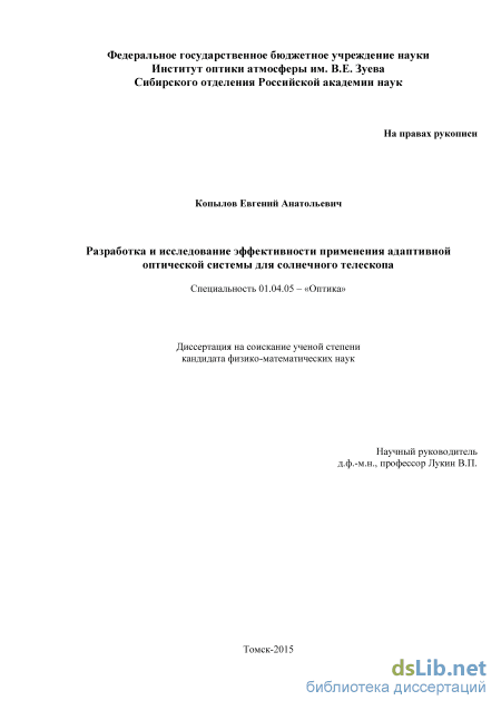 Целью работы является разработка и исследование эффективности применения адаптивной оптической системы, развитие методов адаптивной оптической коррекции атмосферных аберраций на крупно-апертурном солнечном телескопе с учетом условий локального астроклимата телескопа.
