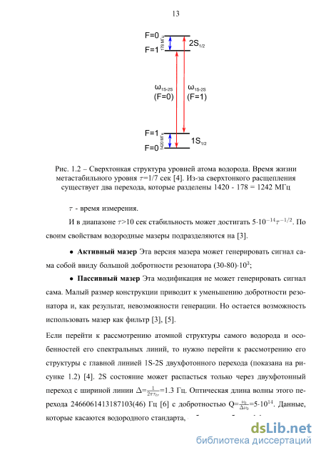 Более чем полвека назад Рамси с коллегами создал первый водородный мазер. В СССР данные исследования начались в 1960ж годах 20 века [3]. Эти устройства широко распространены в различных областях науки и промышленности, таких как метрология, спутниковые приложения, системы хранения времени, тактовые генераторы для атомных фонтанов и оптических часов. Из-за простоты энергетической структуры водородный мазер может быть реализован в относительно простой конфигурации, которая показана на рисунке 1.1